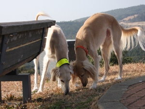 もちろん走りに行ったのだけど、なんと2頭もお屠蘇気分だったのかこんな光景が。