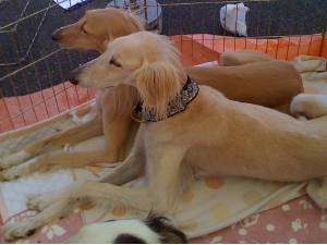 今日は訳あってサークルにサルーキ3頭ボルゾイ1頭で、ちょっとそれぞれ形見が狭く。