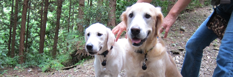 英国ゴールデンのオーブちゃんと鈴ちゃん。