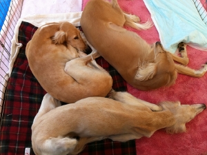 自分の家のようにくつろぐ3頭、どこに行ってもその場所の特等席をいち早くゲットするのがこの子らの特徴でして。