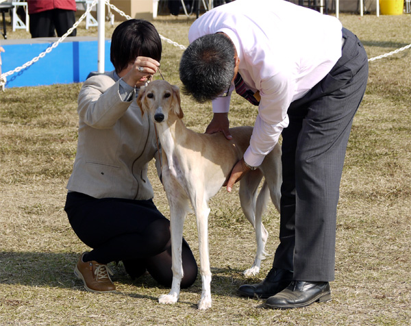 サルーキの本日の出陣は雄CH1頭、雌P1、CH3というメンバー。