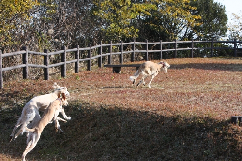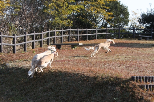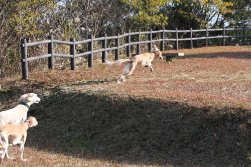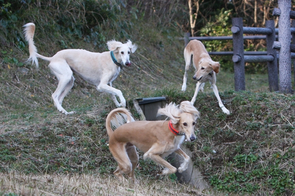 まだまだおこちゃまの追いかけっこだったけど、やっぱりサルーキの血が騒ぐらしいです。
