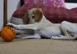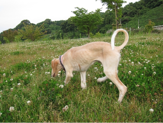 今まで数頭のサルーキを知っているだけですが、こんな子は初めて。