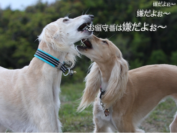 ずっと前に有田のドッグランに行った時、先にアイリッシュセターがいたので孔明にマズルガードを装着したら、いきなり逃げるように出て行かれた事を思い出してしまった。
