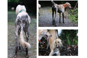 今日の散歩の時、ファティマが調子に乗り勢い余って濡れた草の上に首からスライディングしてしまいました。