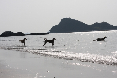 この写真を見たとき、すぐにそう思ってしまった。「老犬と海」(笑)