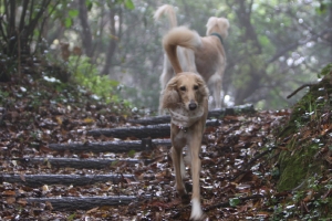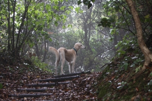 階段をおりて、この林を駆け上がって行きそれを4周繰り返すのが、最近の我が家のHoundsのトレンドのようです(笑) なぜか4周って決まってるようです。先頭はいつもファティマ、若いっていいなぁ♪さて、今日も雨