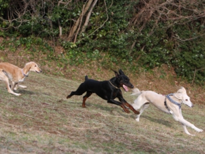 他の犬が帰ってから孔明を投入すると、うって変わって盛り上がる3頭の走り。