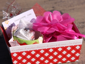 お楽しみのキアッケレカーニのバレンタインセット、苺の器がかわいい〜♪