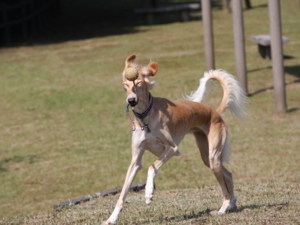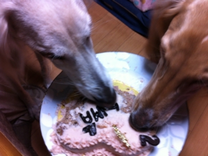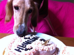 朝起きて、ファティマの耳元で小さく「ファティー、2歳おめでとう」とささやいたら、何を勘違いしたのかしっぽブンブン振って嬉しそう♪