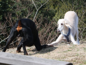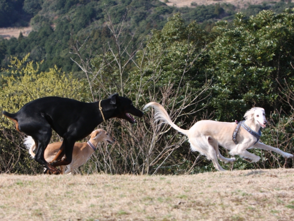 そして今日も2歳のファティマを11歳の孔明がプレイバウして走りに誘っています♪