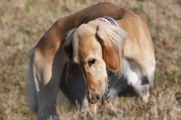その時は出血は見当たらず1時間ほどして、広場で歩様がおかしいので後ろ足を触るけど痛がる様子もなく。