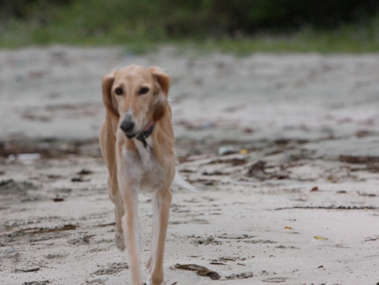 朝だいぶ走ったので、夕方はFatimahだけいつもの浜へ連れて行ってみました。