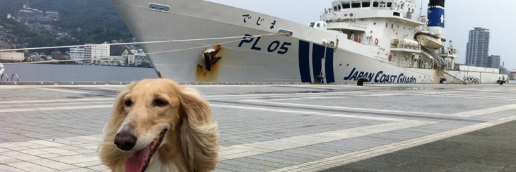 埠頭には「JAPAN COAST GUARD」と船体に書かれた海上保安庁の巡視船「でじま」が停泊中。