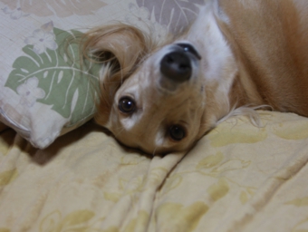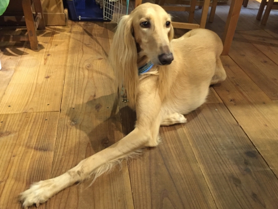 ドッグランの後で行ったので、まったりとカフェでもこの通り、お利口ちゃんでした。